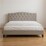 - Curved upholstered bed head with classic button detailing
