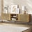 The two closed interior spaces with large louvred handle-less cabinet doors at both ends of the unit are cavernous and offer plenty of room for all your entertainment paraphernalia while the central two open shelves add complementary storage with equally spacious offerings. Better still, built-in cable openings behind the two central open shelves allow for easy connection of your media devices as well as ensuring neat and tidy cable management.