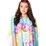 Achieve an instant groovy 1970s themed costume with this 70s Hippie Poncho Womens Costume. The costume includes a rainbow tie dye poncho with frayed hem as well as a matching tie dye printed headband.