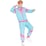 Look absolutely tubular at your next 80s-themed party or sports-themed event in our funky 80s Pastel Blue Tracksuit Adult Plus Size Costume. This fun shell suit is made from a lightweight parachute-like polyester material and comes with a blue jacket with matching pants and features purple and pink panels on the arms, legs and down the chest in a v-shape. What's more, this fantastic costume jacket features a workable zipper and matching pink cuffs, while the pants feature an elasticated waist for easy fitting and matching pink ankle cuffs. Top it all off with your own accessories to get that authentic 80s workout look. Complete your costume with a fun 80s wig, sweatbands, a bum bag and sneakers and be the life of any party.
