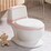 Designed for toddlers. Seat height is suitable for little legs. Kids sized toilet. Soft seat for their comfort. Number ones are no problem. Raised front rim makes it splash proof for less mess. Easy to clean.