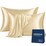 LINENOVA Silky Satin Pillowcases Luxury Soft Standard Pillow Covers Twin Pack 48x74cm 12 Colors Champagne