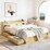 It's easy to sleep well on the Artiss Aura Bed Frame. Made from thick 15mm and 18mm particleboard with 12mm plywood slats and a wood paper finish, the bed frame is designed for long-lasting use and longer-lasting sleep. The thick plywood slats and centre beams provide total support, and noise-free use, and improve the life of your mattress. It features a multifunctional design that allows you to use the bed for storage and to charge your phone overnight. Two drawers with smooth castor wheels can be installed on the left or the right for convenient storage. The headboard has smooth edges and plenty of room for your bedroom essentials. It also features two USB charging ports connected to a 200cm cable for convenience. While you power down for the night, you can power up with the Aura Bed Frame from Artiss.