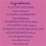 Sodium Carbonate, Sodium Sulfate, Sodium Dodecylbenzene Sulfonate, Sodium Silicate, Zeolite, Sodium Stearate, Sodium Palmate, Stearic Acid, Palmitic Acid, Sodium Acrylic Acid/Ma Copolymer, Perfume, Phenylpropyl Ethyl Methicone, Disodium Distyrylbiphenyl Disulfonate, Disodium Anilinomorpholinotriazinylaminostilbenesulfonate, Cellulose Gum, Water, Dyes.