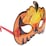 An angry Pumpkin, fix the II-slot connector in the middle, then fix the V shape connectors onto both sides of the mask. Slightly bend the sticks, shake it well, insert one end to the V shape connector, gently curl round the eye-hole and land the curve onto the closest slot, then fix the other end back to the V shape connector; finish the other side the same way then find the left and right grip to fix onto the V-shape connectors, you can then wear the mask onto the face.