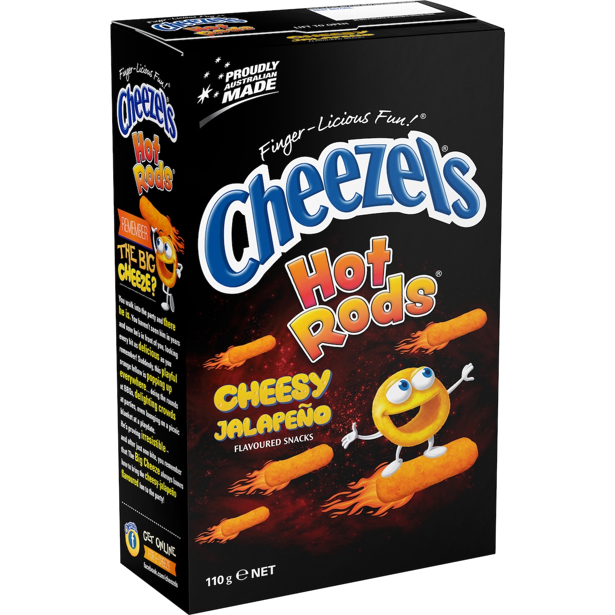 Introducing a firey twist to Australia's favourite cheesy snack...Cheezels Hot Rods! Ignite your tastebuds with the newest addition to the Cheezels family. Packed with zesty jalapeno flavour and a punch of cheese, these rod-shaped snacks are set to bring a sizzle to snack time. Gluten free and very tasty.
